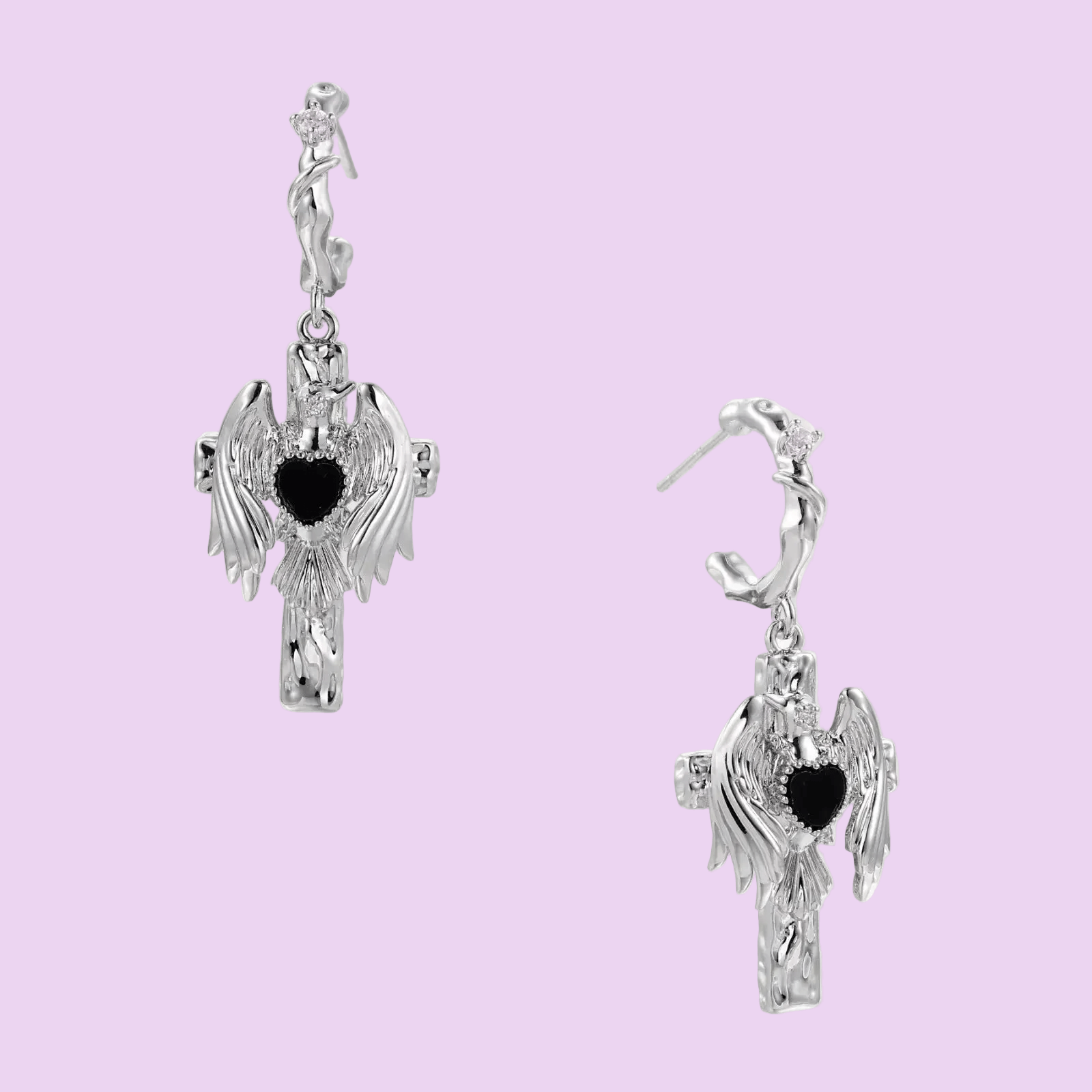 White gold-plated wings cradle a black zirconia heart locket—giving guardian angel energy that's equal parts fierce and romantic.