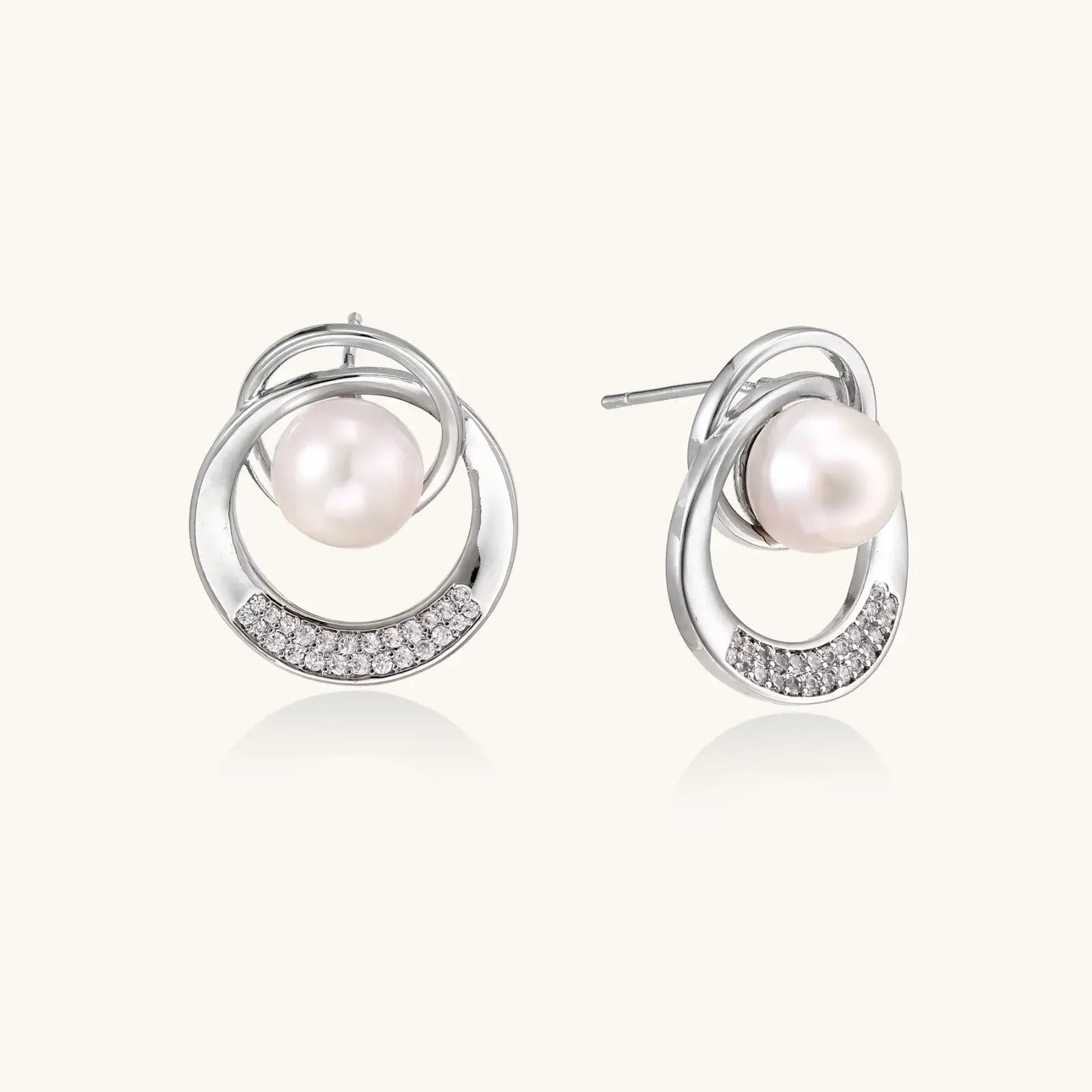 Concentric circles orbit a luminous freshwater pearl—known for nurturing feminine energy—in these architectural studs that totally elevate your everyday elegance.