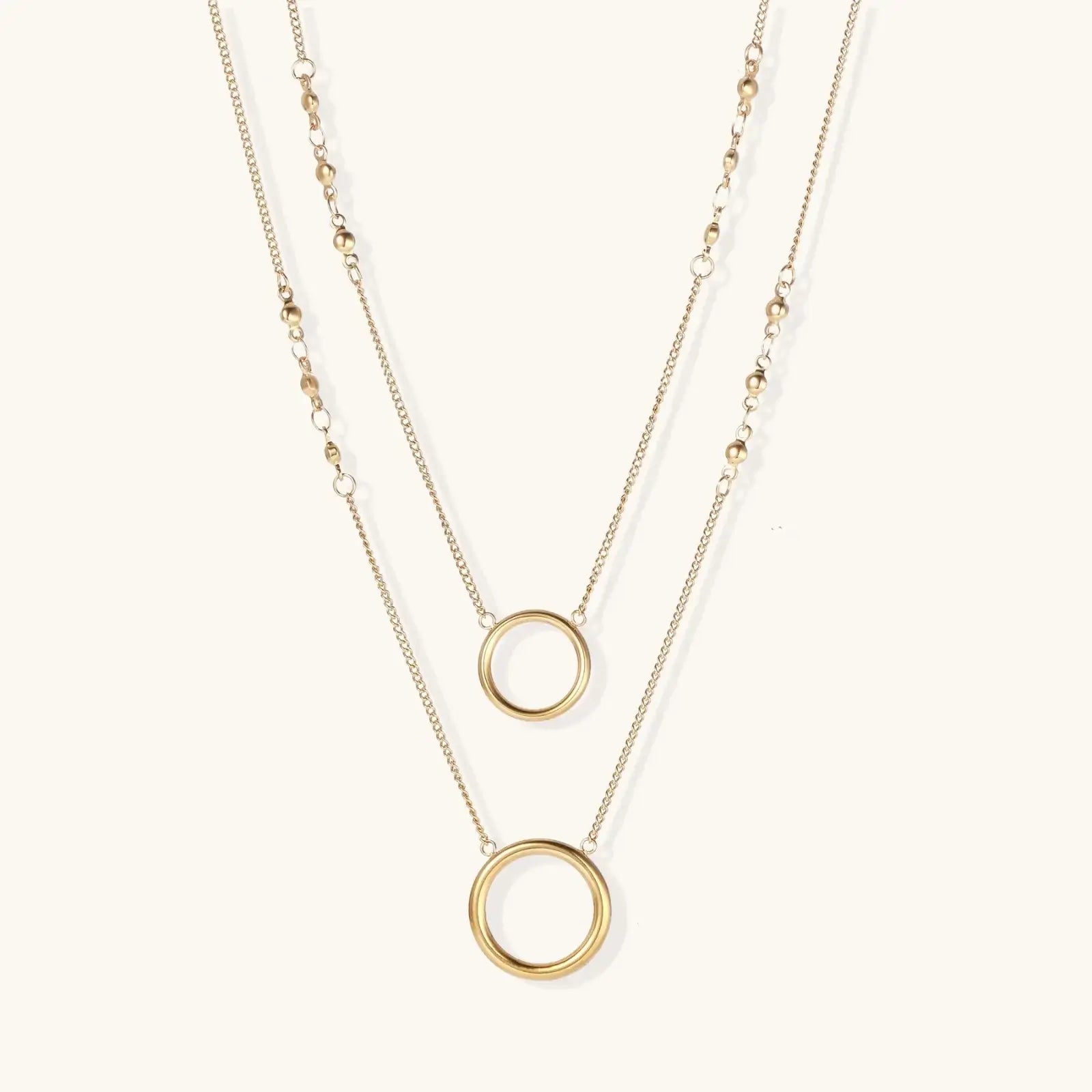 Two golden circles channeling completion energy on perfectly layered chains. This 14K gold-plated stainless steel set brings confident warmth to brunch hangs or golden hour selfies—wear both or style solo for that soft boss energy you're manifesting.