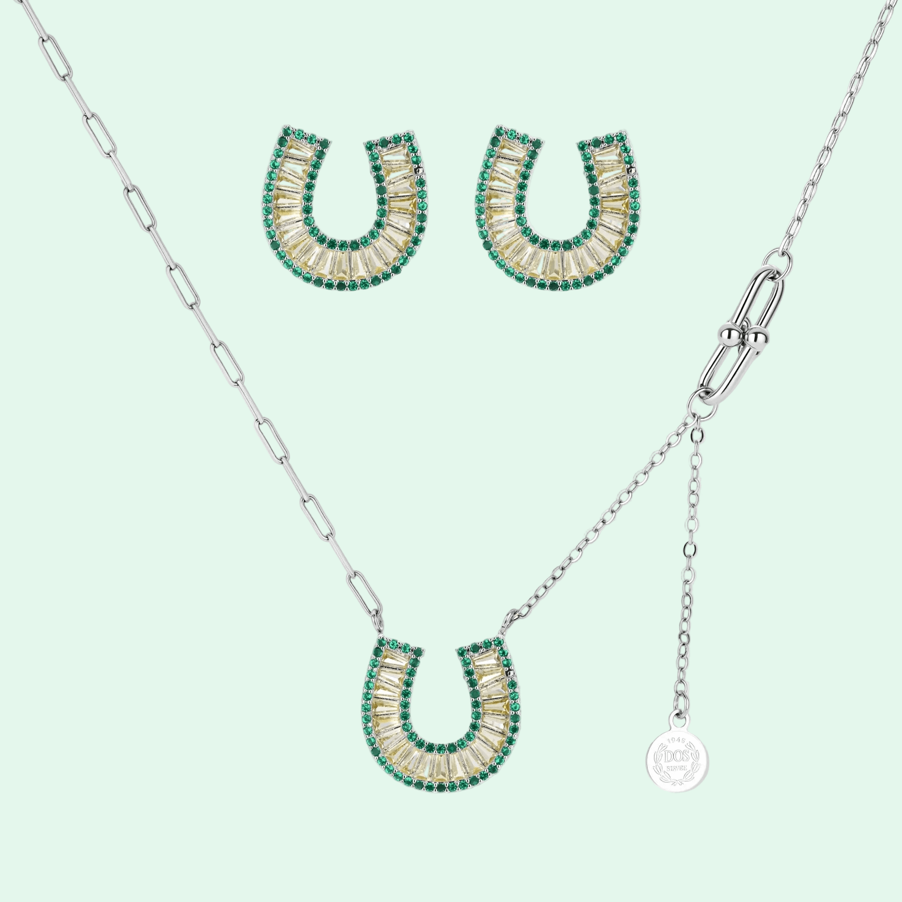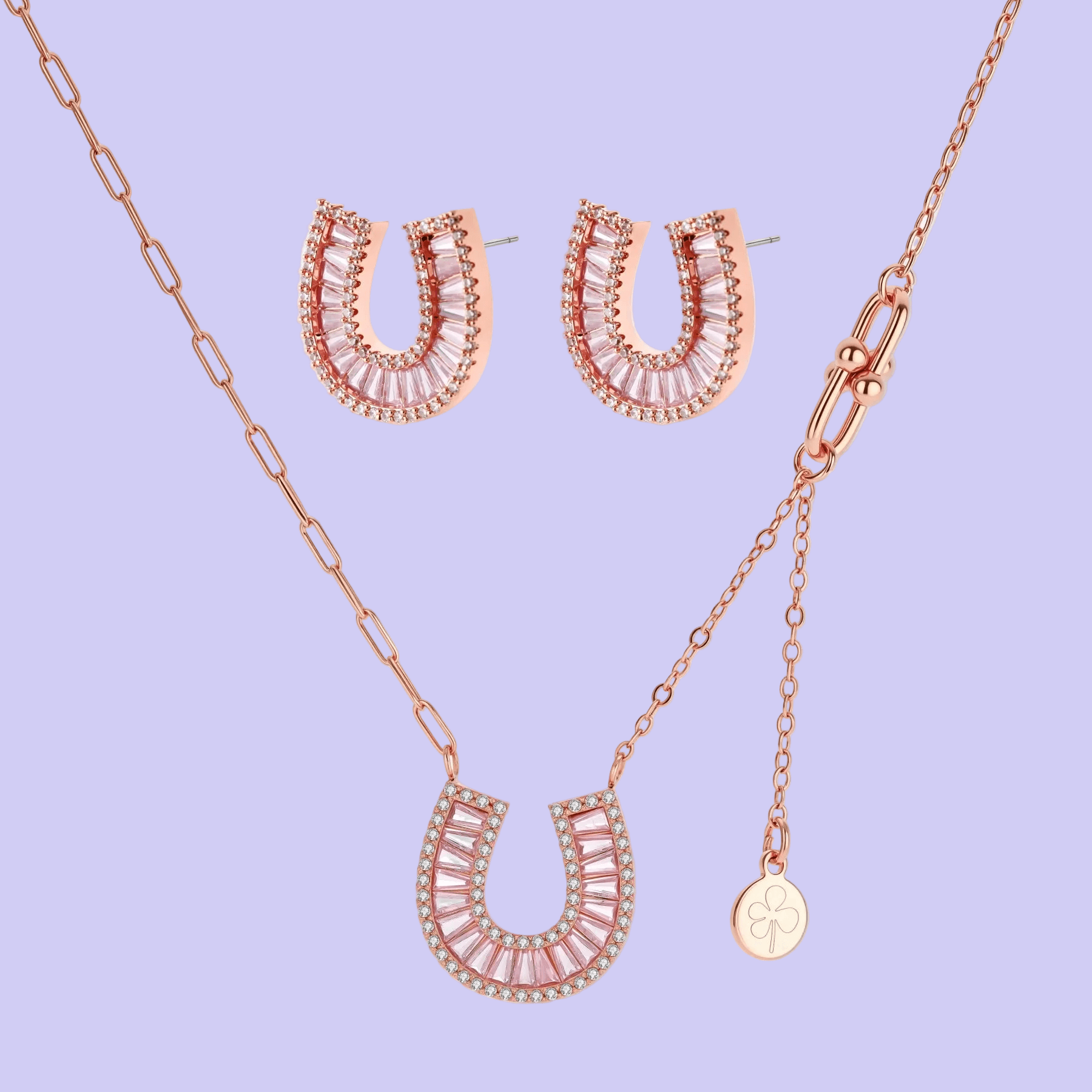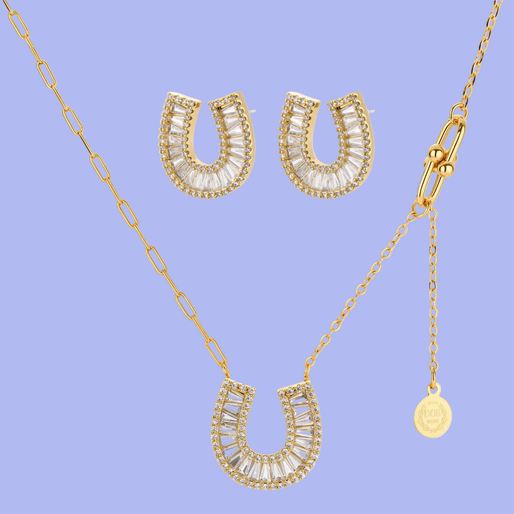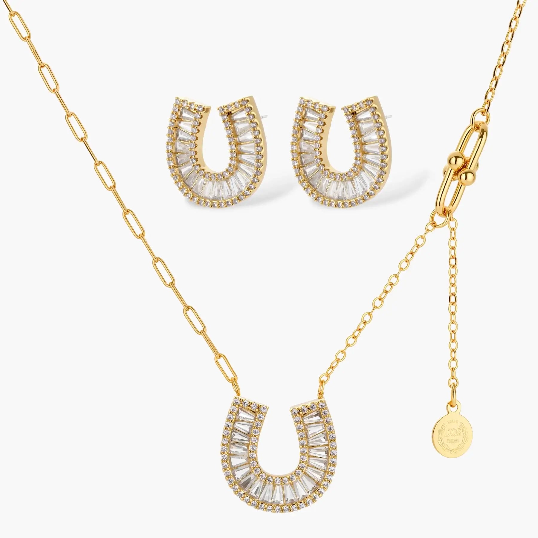AAA cubic zirconia radiates from lucky horseshoe pendants that channel confidence and warmth through gold-plated elegance.