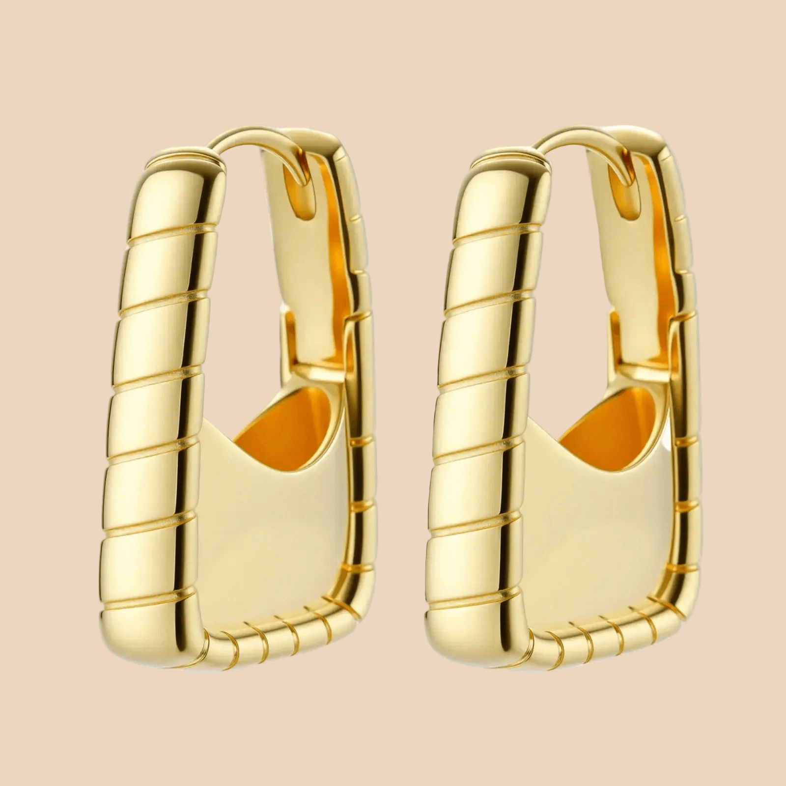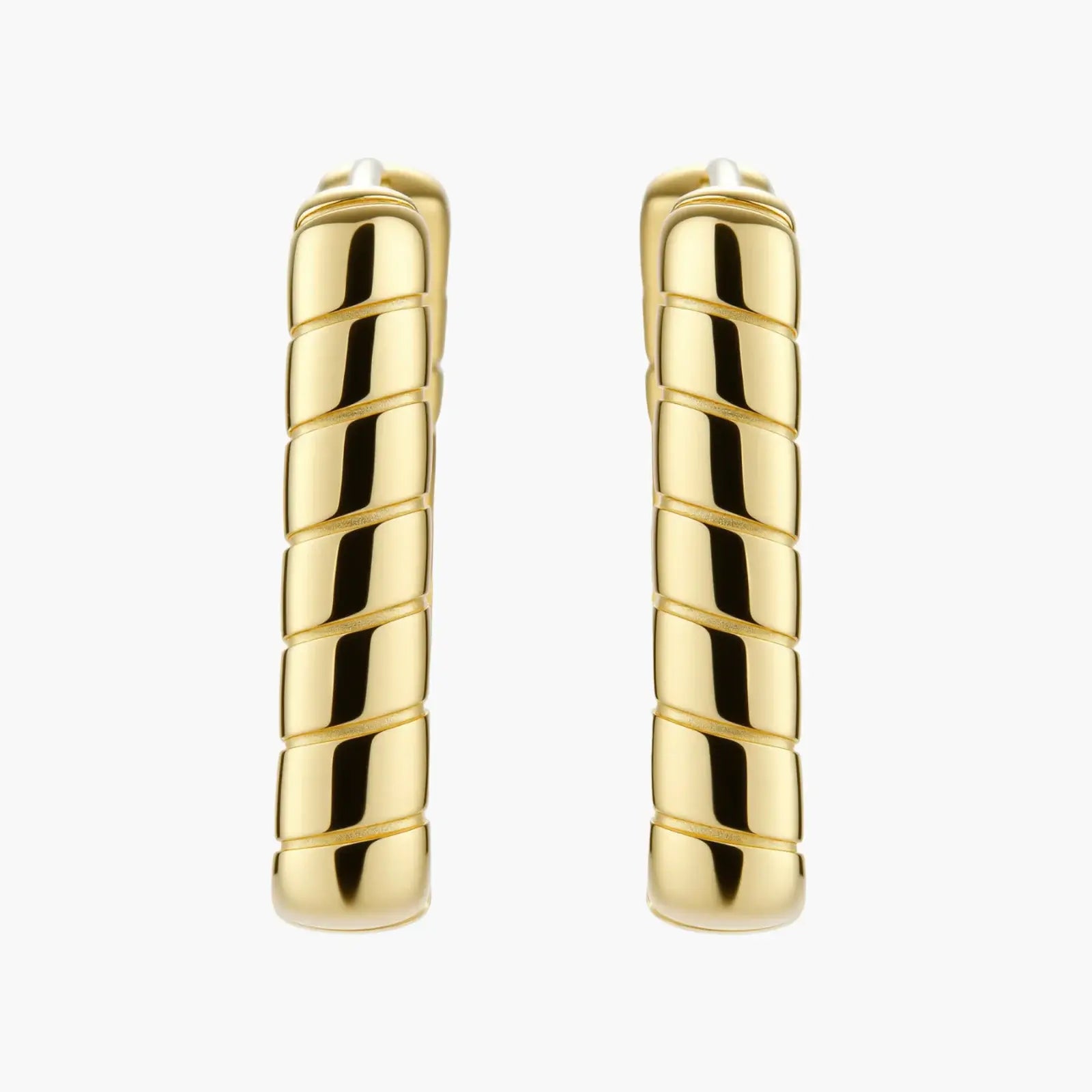 Architectural bamboo-inspired segments meet luxe 18K gold plating in these statement huggies that channel confidence and warmth.