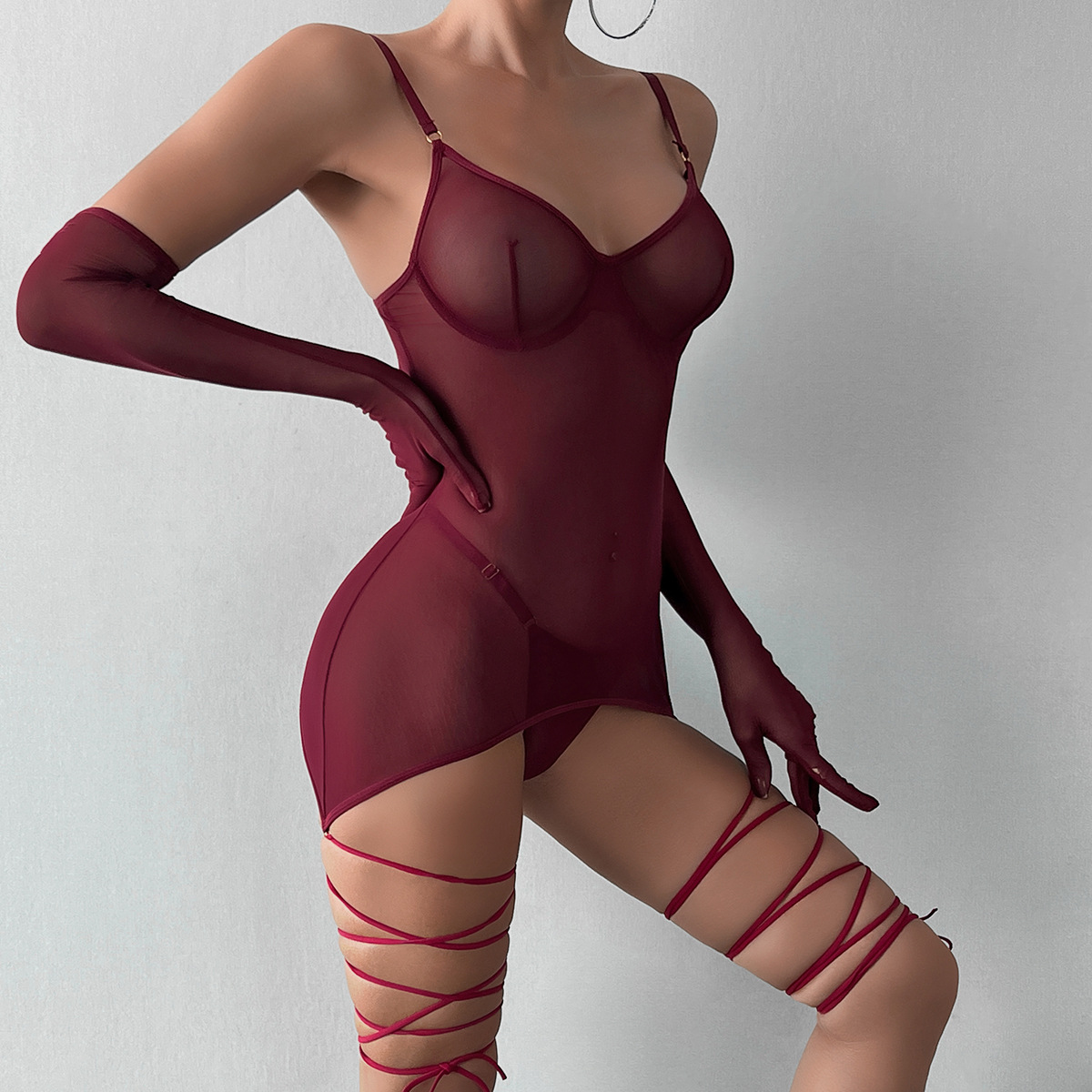 Style: Bodysuit, Mesh Dress