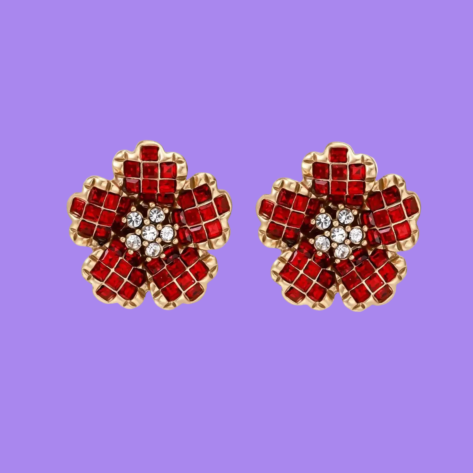 Vintage Hollywood energy in eco-brass and zirconia—these mosaic flower studs blend old-world glamour with conscious craftsmanship.