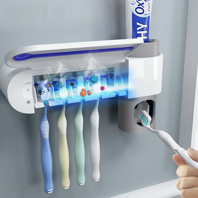 Antibacterial Ultraviolet Light Toothbrush Sterilizer : Automatic Toothpaste Dispenser + Toothbrush Holder & Cleaner
