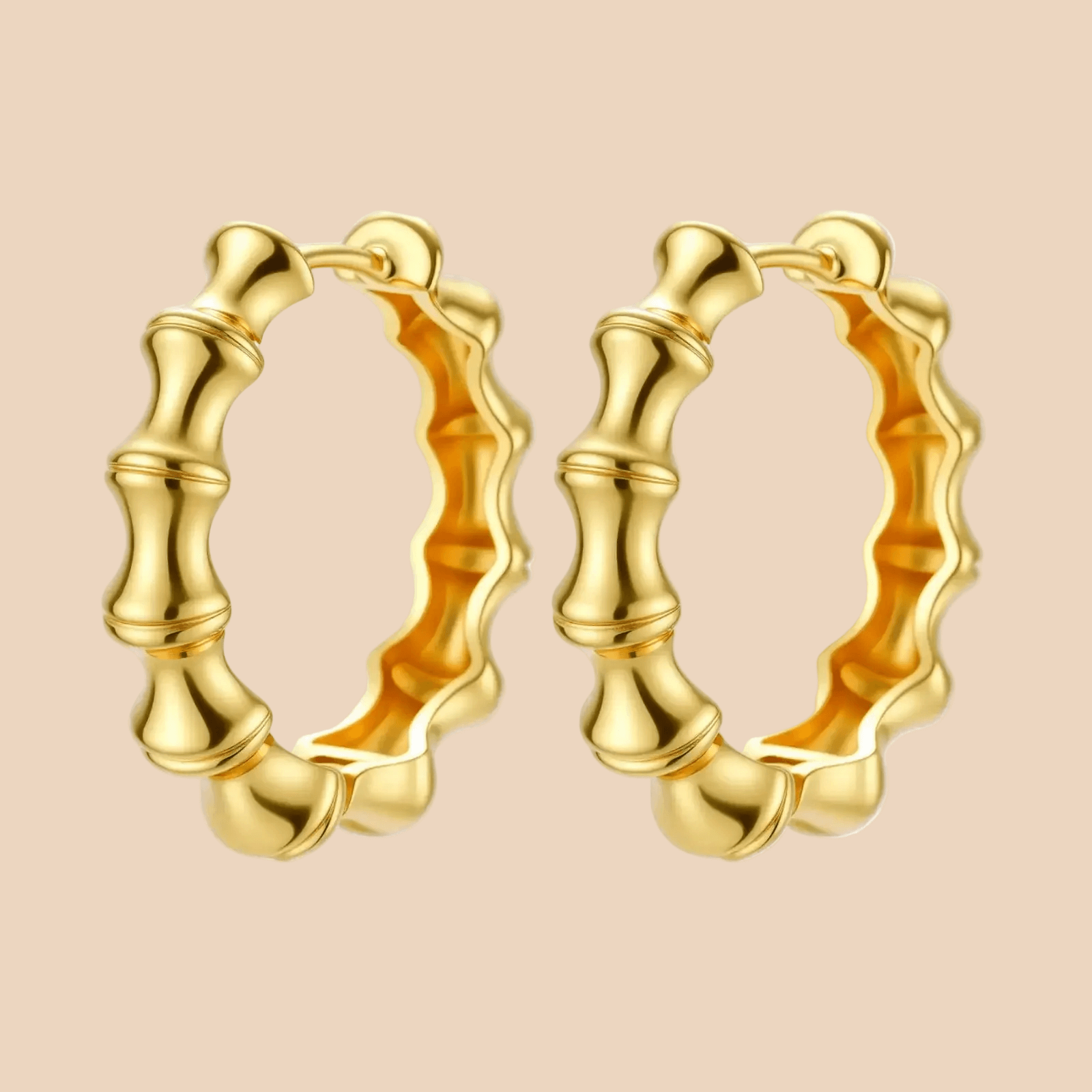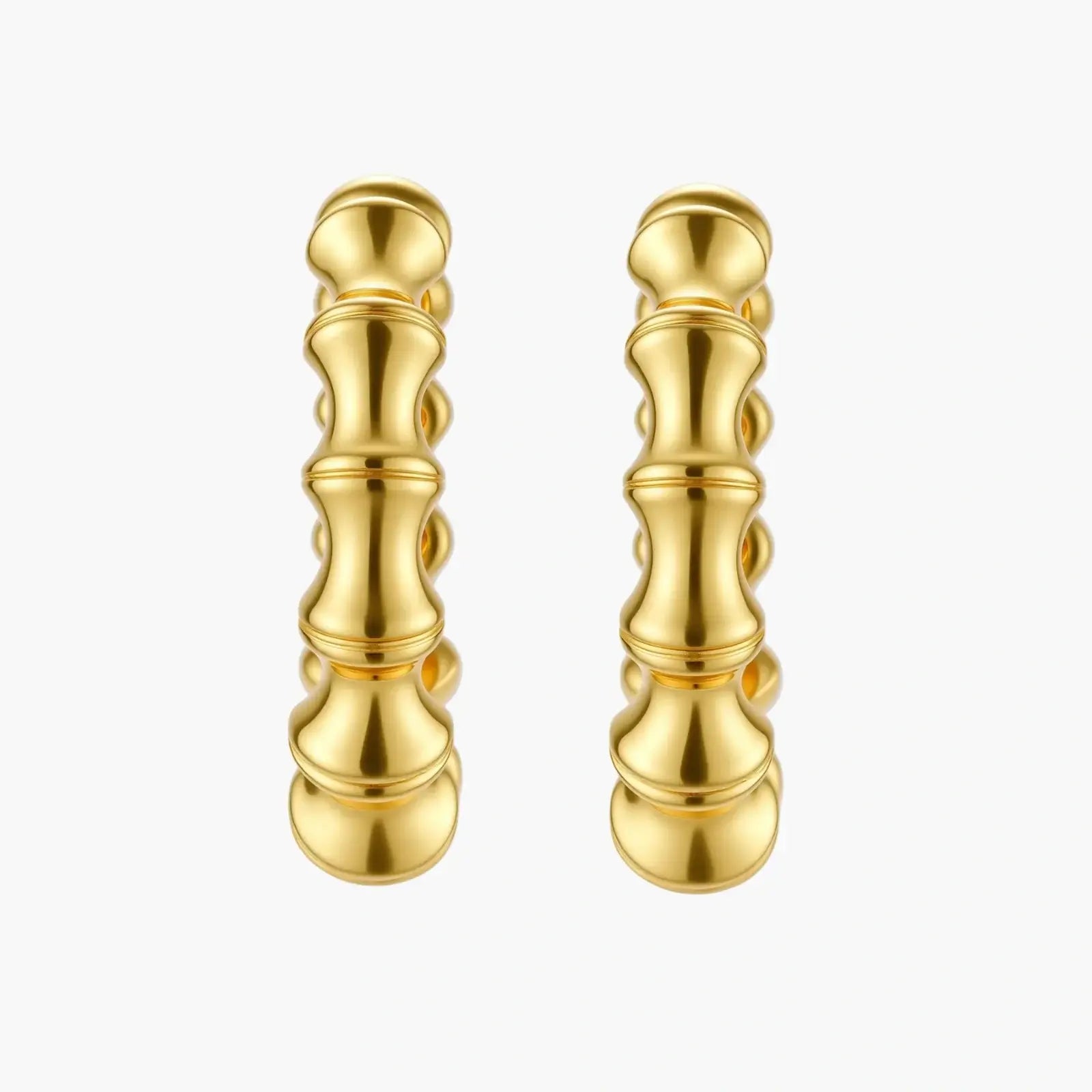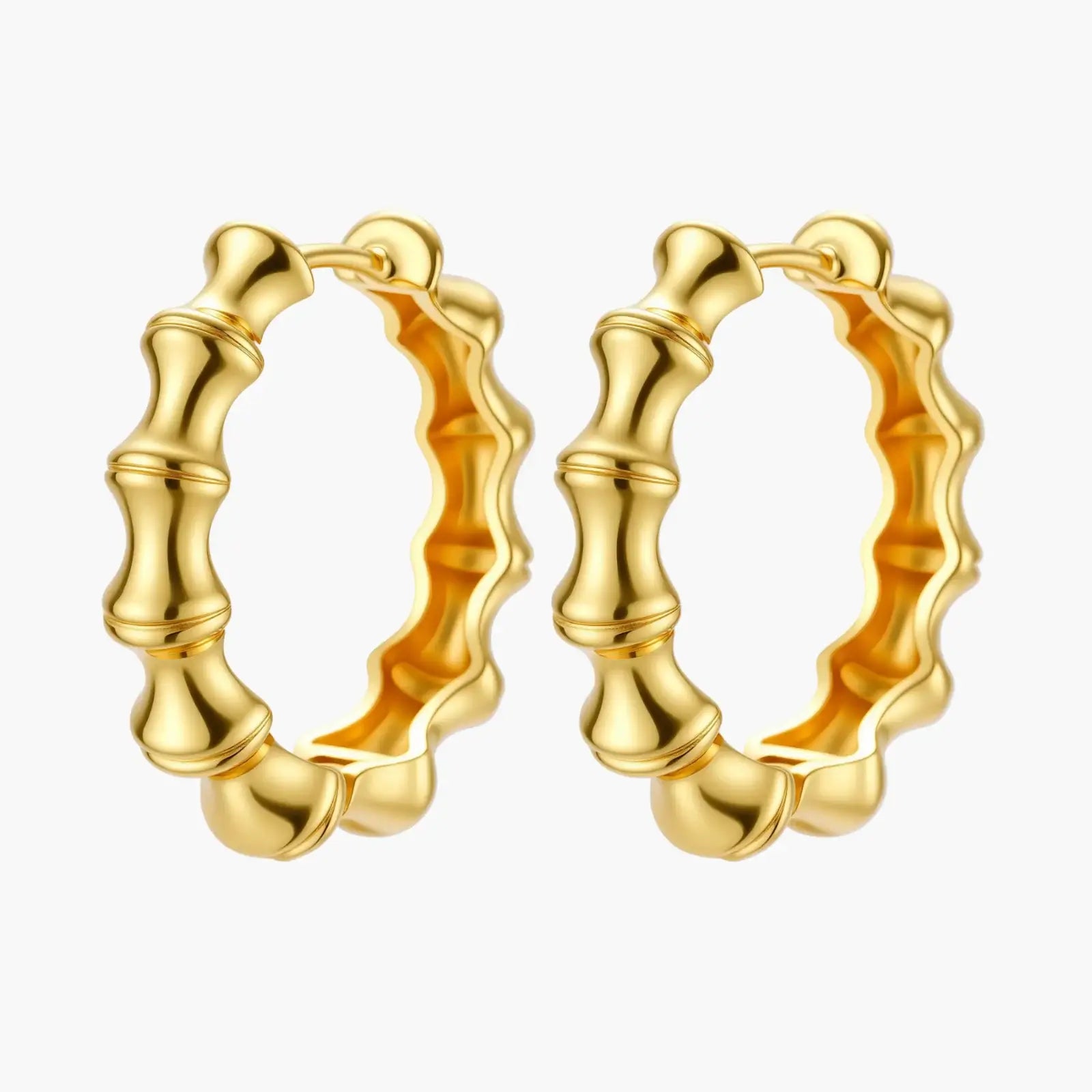 Gold-plated sterling silver hoops with bamboo-inspired segments that channel confidence and warmth.