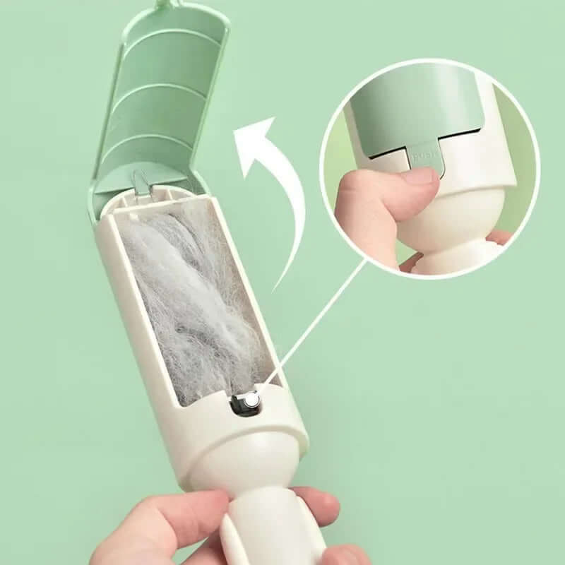 【Easy to Clean】- Upon picking up loose pet hair, simply press down on the release button to open and empty out the fur remover's waste section.