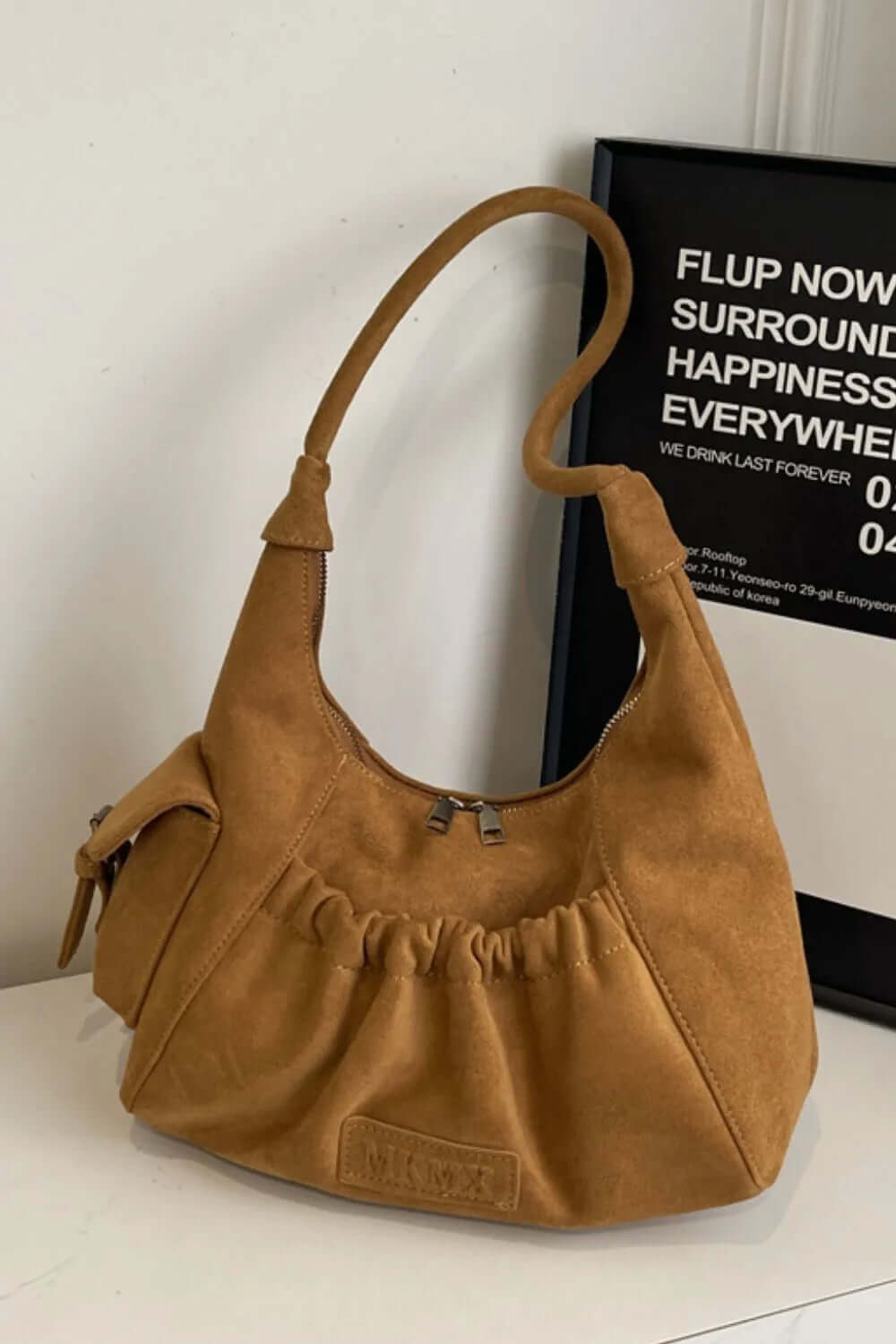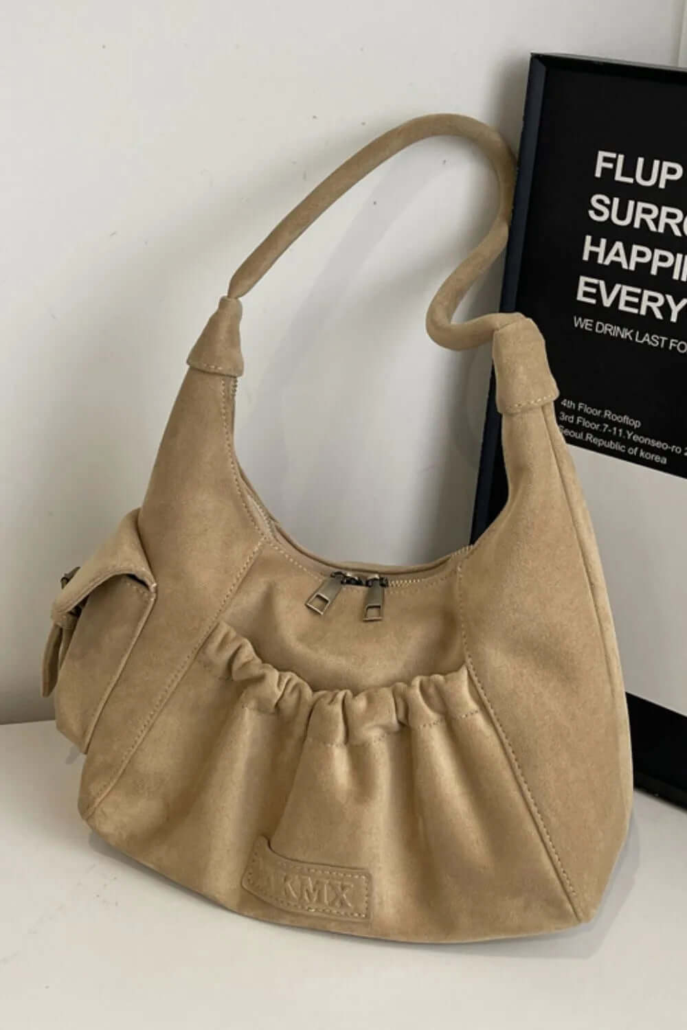 Women's Premium Fashion Ruched Suede Handbag with Zipper